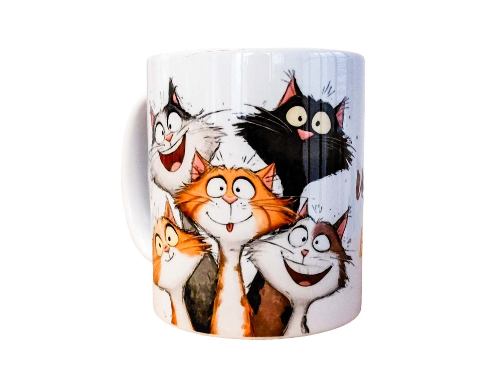 Chcete někoho rozveselit? Zkuste to tímto hrnečkem s veselou kresbou koček a špatná nálada bude ihned tatam.