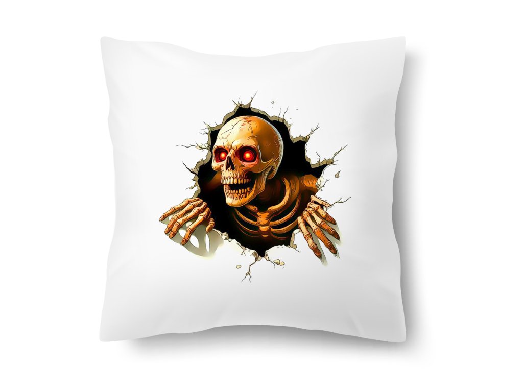 Polštářek s potiskem – Lebka ze zdi 40 × 40 cm