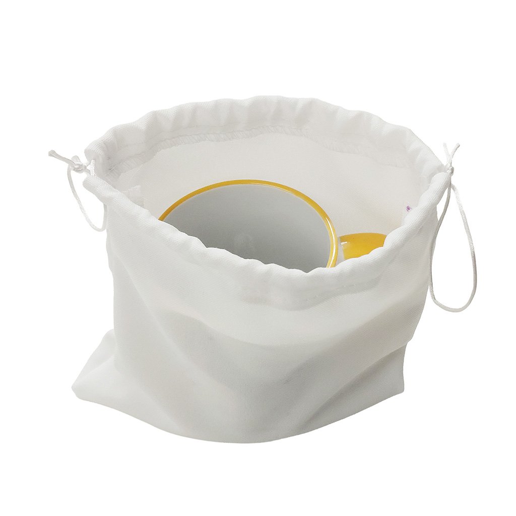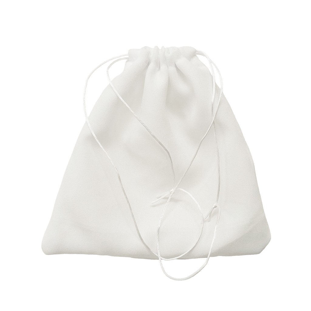 Textilní dárkový pytlík o rozměru 18x18 cm se stahovací šňůrkou v bílé barvě. Tento pytlík je v hodný pro balení menších dárků (hrnečků a plecháčků) a je vhodný na následný sublimační potisk.
