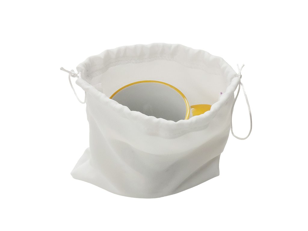 Výhodné balení 10 ks dárkový pytlíček z kvalitního polyesteru na hrneček o objemu 300 ml nebo jiný menší předmět v rozměru 18x18 cm v bílé barvě. Tento pytlíček je vhodný pro sublimační potisk.